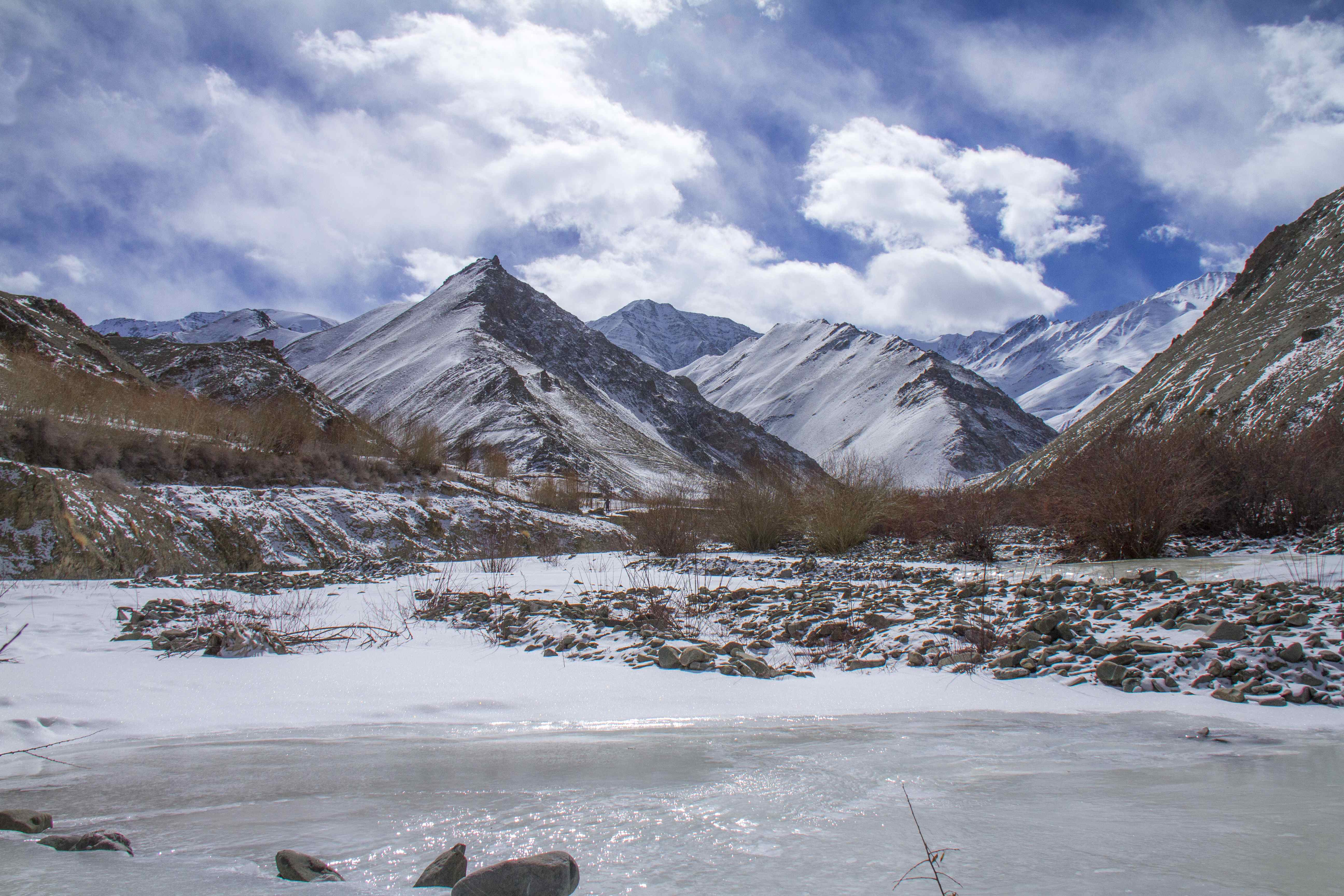 Come second of February , and we were driven in an Innova for a hour and a half till we reached the Village of ZinChen , where the Mules and our retinue was waiting for us .  More than half a dozen Mules were loaded with all our camping requirements and supplies  and we started our short one hour trek , through frozen streams and rocky paths to  the Husing Valley ,  our campsite .