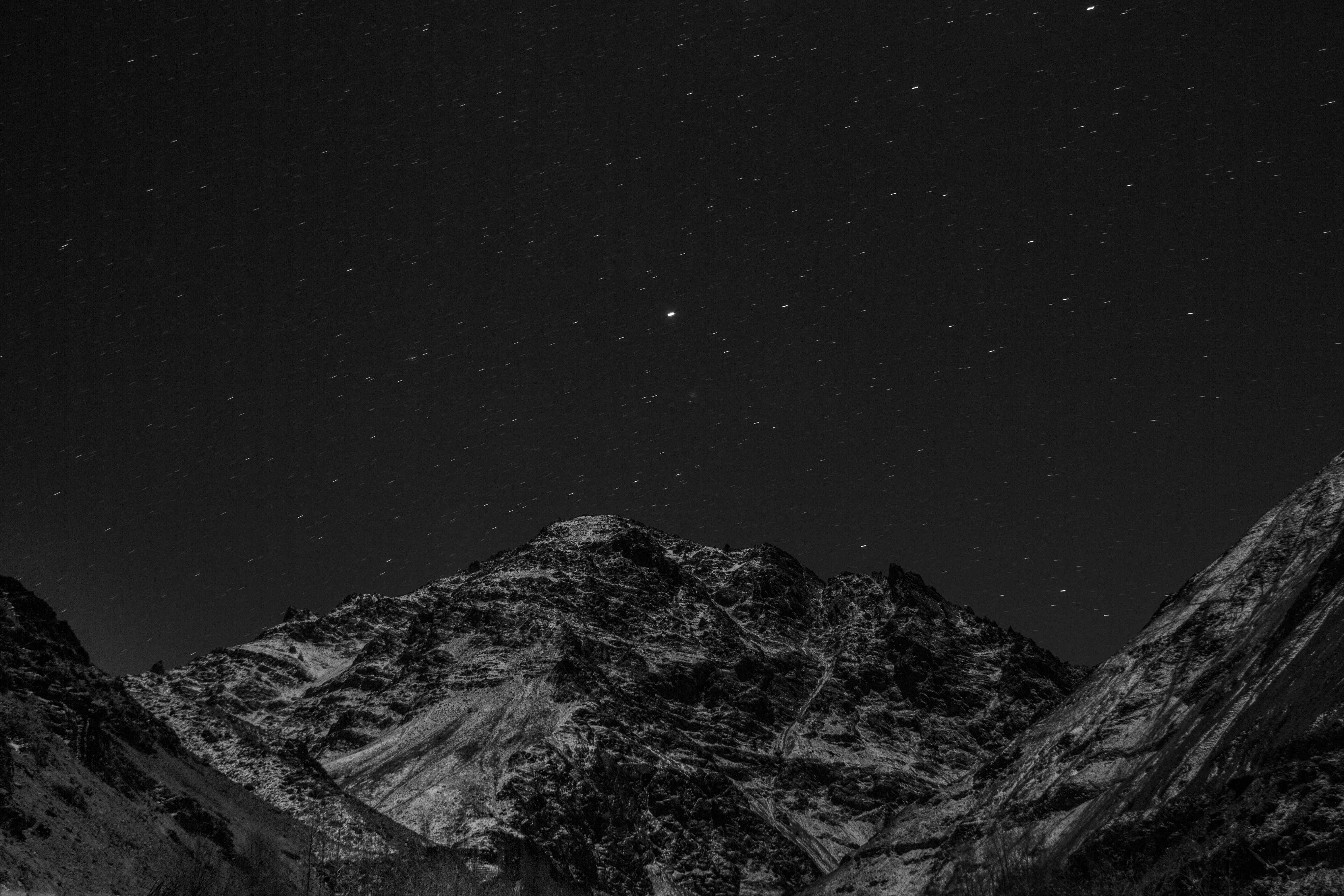 Night sky over the freezing camp in moonlight