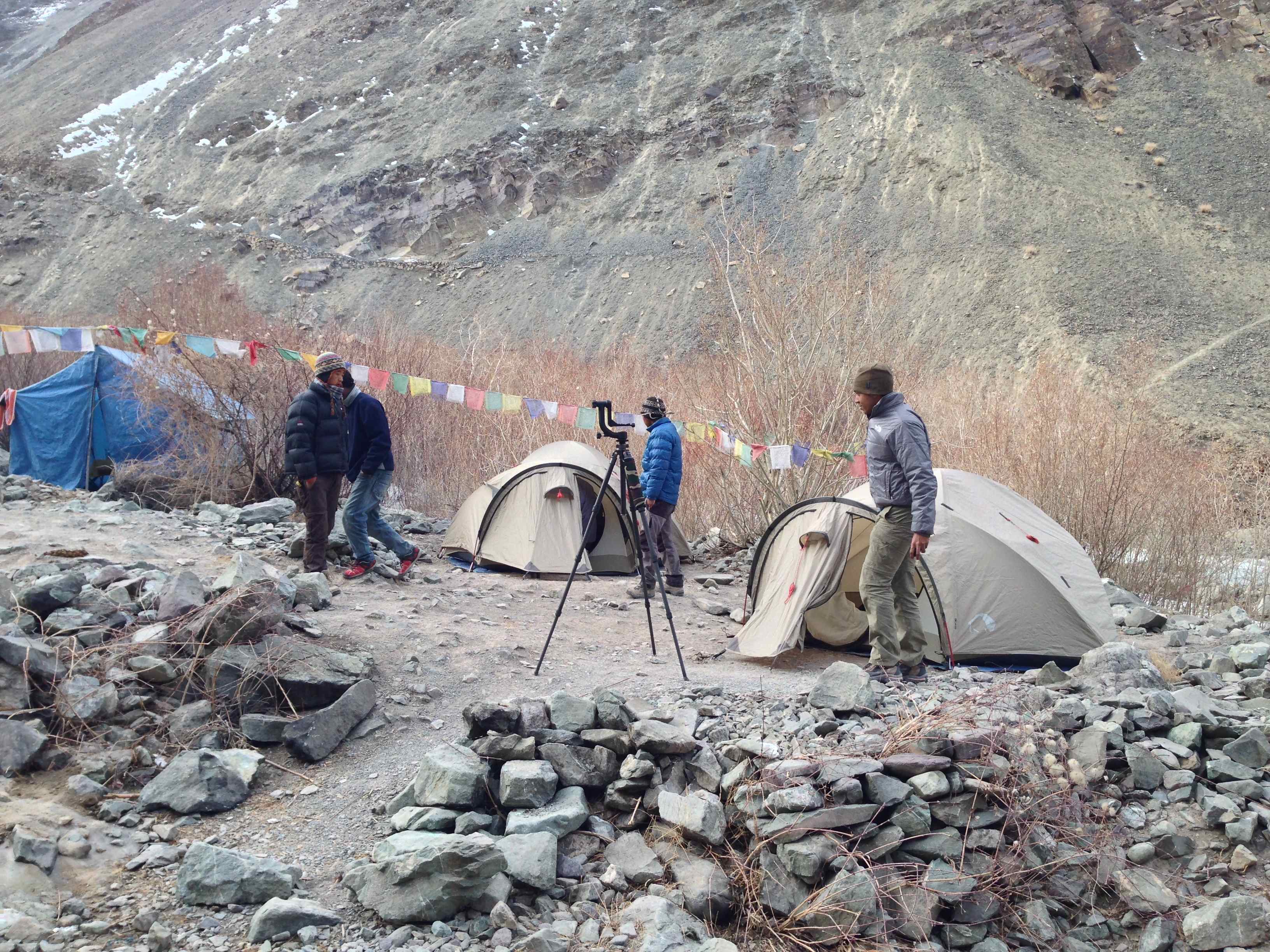 This campsite was going to be our home for the next ten days .  Varun and I shared a tent that had just enough space for our sleeping bags plus the essential items and my camera bag . I mentally prepared myself to be in the same set of clothes for the next ten days and to take on all that the environment would throw at me.