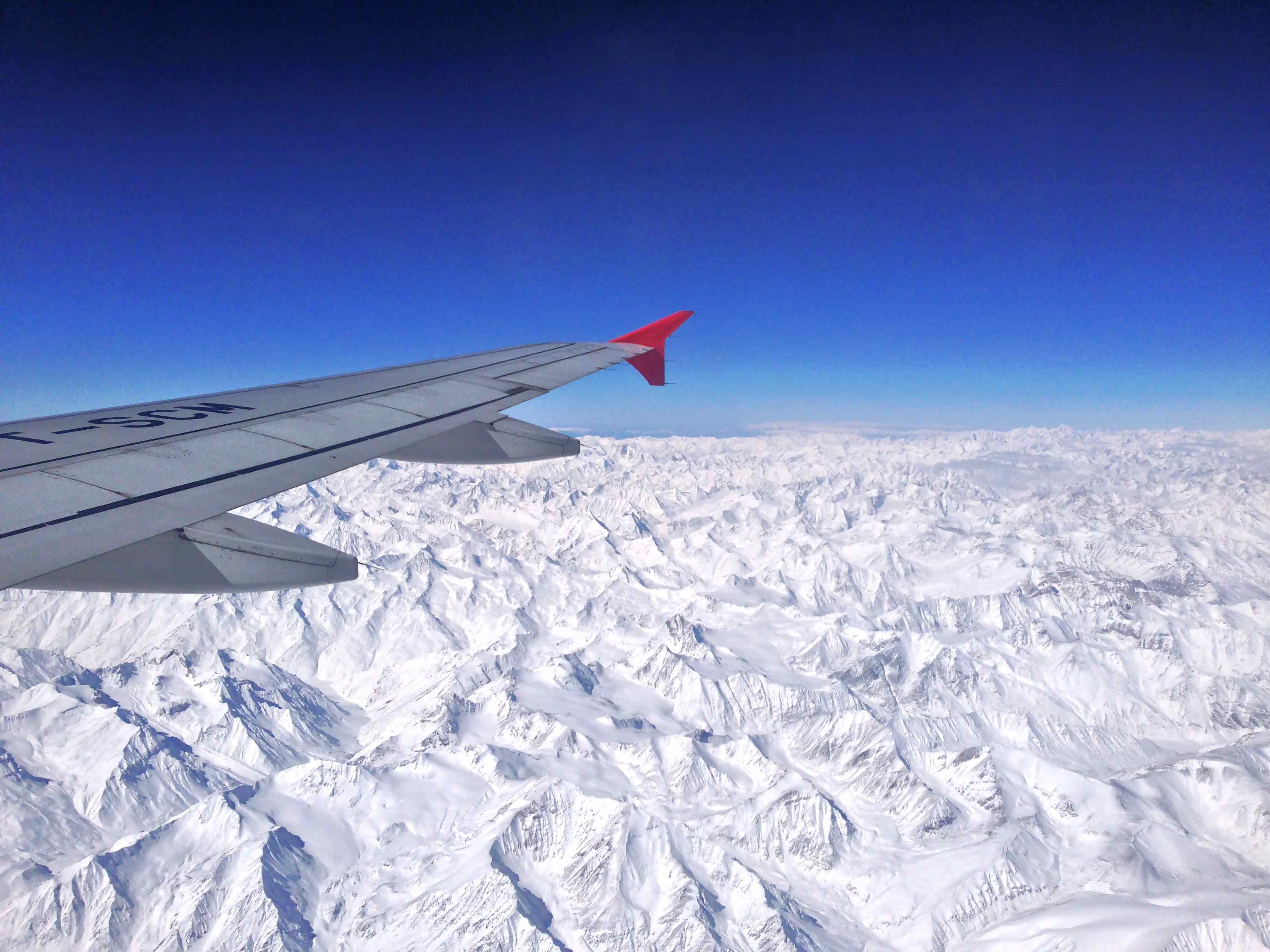 View of the Himalayan Ranges and its freezing conditions from the flight