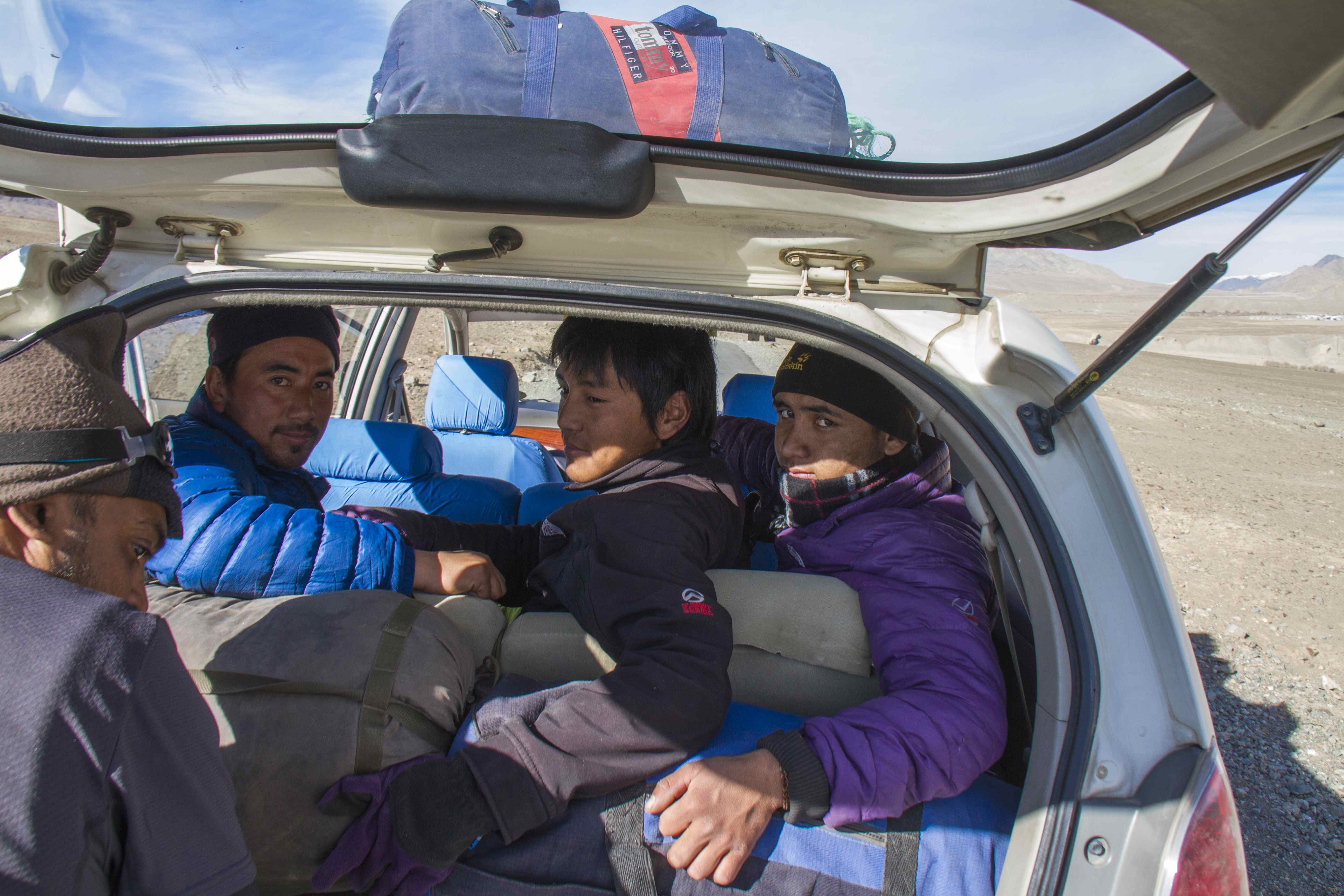 Last Minute Check.. Jigmet, Stanzin and Tamchos in the Innova on route to ZInchen